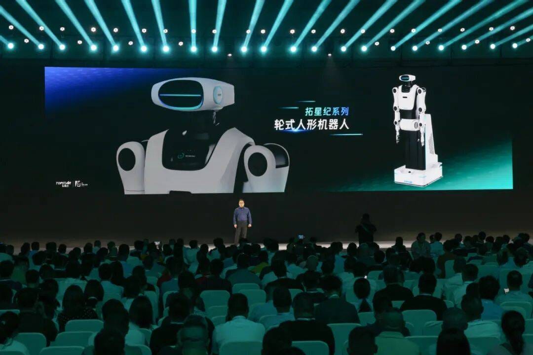 2025年9月,拓斯达发布了“拓星纪”系列轮式人形机器人。该机器人搭载智谱AI大模型,具备通过思维链进行复杂任务推理的能力。其仿生七自由度双臂,可灵活适配灵巧手、夹持器、吸盘等多种末端执行器,在仓储或工厂环境中能应对多种作业场景。