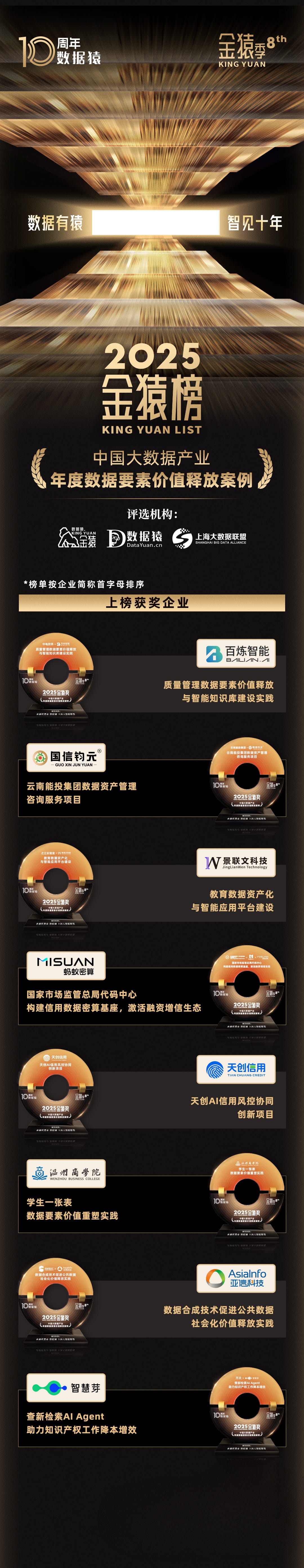 “第八届年度金猿季策划活动——《2025中国大数据产业年度「数据要素价值释放案例」》榜单/奖项”由金猿组委会X数据猿X上海大数据联盟共同推出。