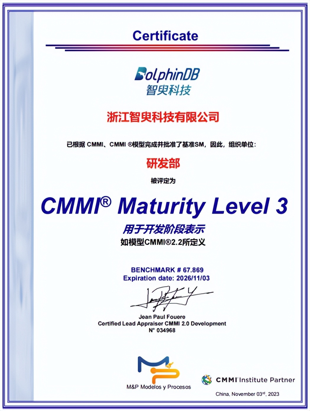 颁发机构:CMMI Institute Partner