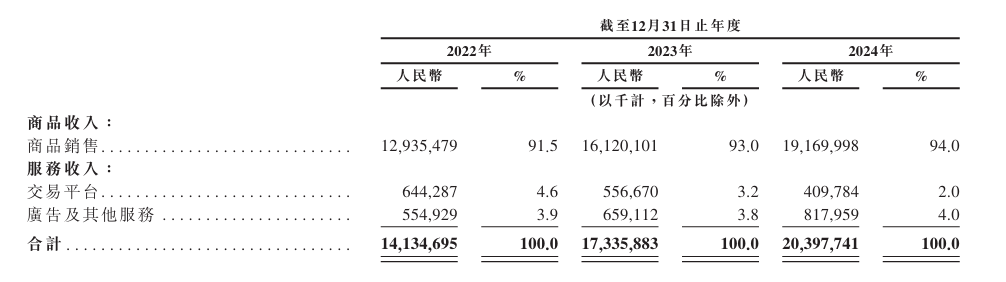数据猿在研究京东工业招股说明书其收入构成时发现,在2022-2024年的收入中,分别有91.5%、93%和94.0%来自于商品销售,服务销售均不超过10%。