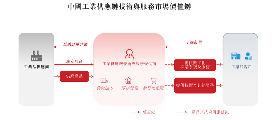 然而,B2B市场总量非常庞大,而且中国已经成为全球工业供应链的引领者。根据灼识咨询2024年的数据,中国工业供应链市场规模达人民币11.4万亿元,居全球首位。之所以迟迟做不到数智化,业内常说的痛点包括工业品品类繁杂、非标属性显著、缺乏一站式服务体系、价格机制不透明、采购管理流程低效等,这些理由导致B端数字化程度长期偏低。
