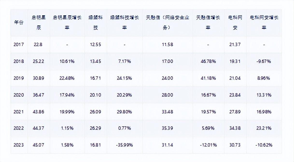 2016年11月,《网络安全法》正式颁布,掀开了网络安全新的一页。随后几年相关政策密集落地,以政策为导向、市场为辅的To B/G网安行业迎来加速发展期。也正是在这一时期,奇安信、启明星辰、绿盟科技、天融信、电科网安等一批安全厂商,迎来快速发展期,并陆续完成IPO。