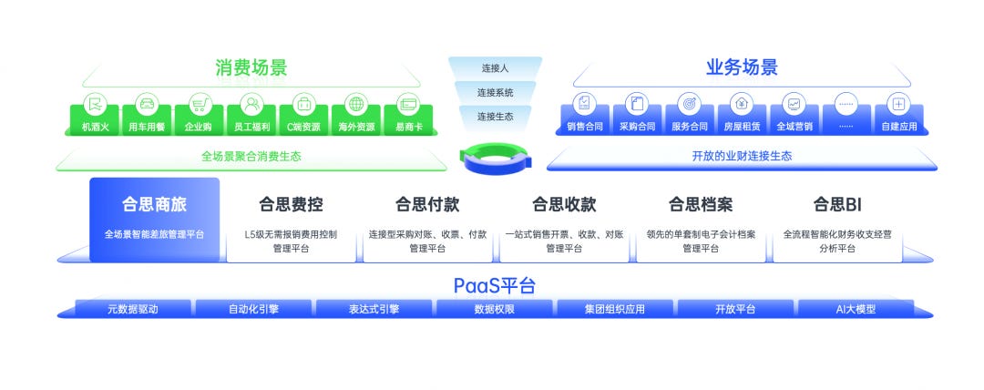 合思旗下产品、场景和生态的底层共享一套来自合思的PaaS平台,并通过元数据驱动、自动化引擎、表达式引擎、数据权限、集团组织应用和开放平台来支撑,这也是合思可以灵活建设应用的基础。合思商城将企业的因公消费全部纳入到在线数字化管理平台,贯通了事前预算申请、事中采购消费受控、事后对账结算归档。消费品类覆盖国内国际机票、酒店、火车、用车、用餐、办公物品采购,支持多渠道同屏比价,实现一站式消费、采购体验,管控规则丰富,员工无需垫资、无需报销,企业统一对账、统一开票、统一结算。合思联合多家银行发卡支付能力,通过“易商卡”实现线下消费场景闭环,满足企业备用金等零星支出的管理诉求。此外广泛连接主流TMC厂商,实现产品无缝对接,同步员工申请并获取消费订单,一键导入单据,费用信息自动赋值,大幅缩减因公消费的提报工作量,让员工享受极致的报销体验。