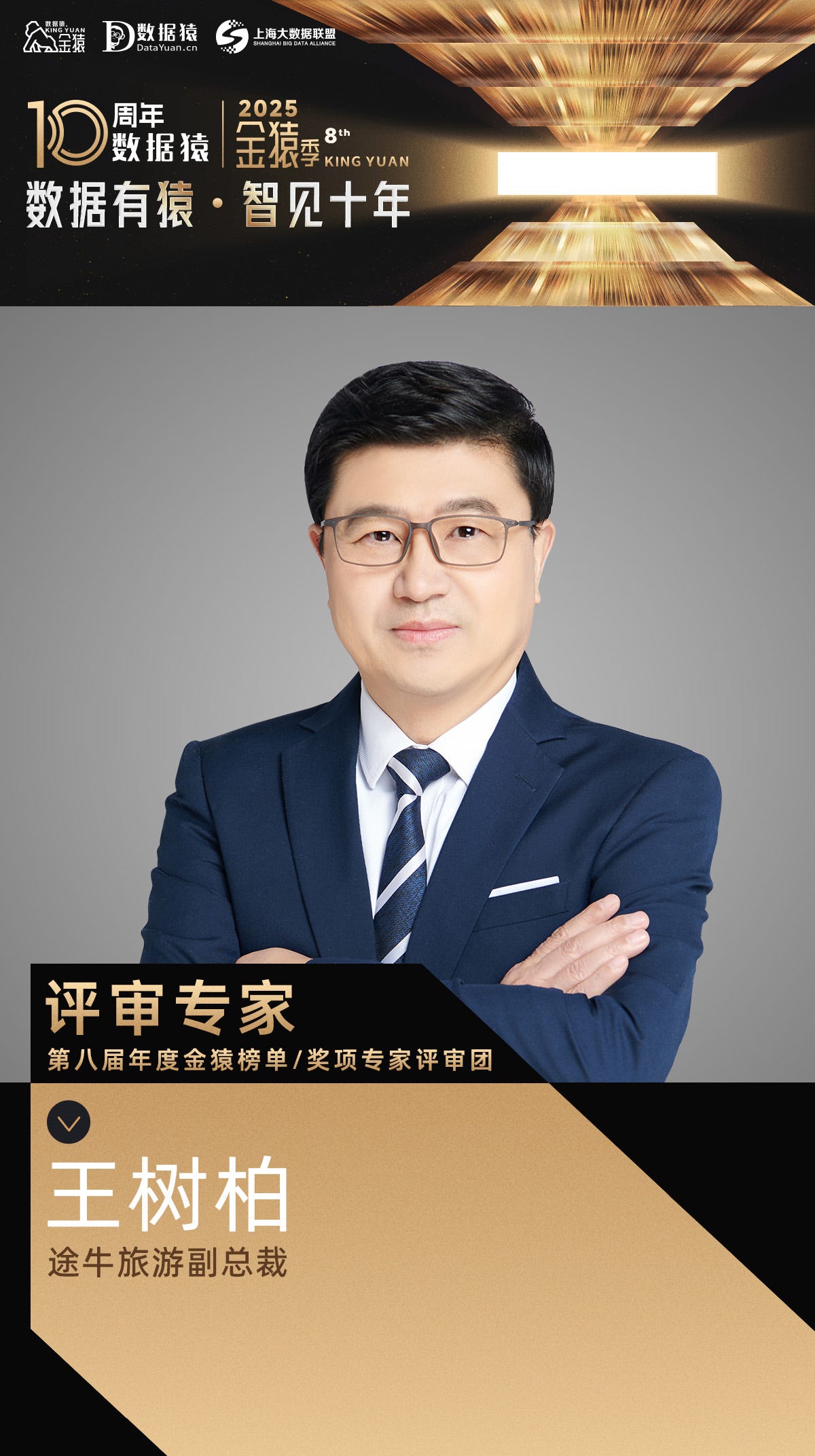 【终审团专家公告】途牛旅游副总裁王树柏,已确认成为“2025第八届年度金猿”榜单/奖项评审团专家评委,并将授予评委荣誉证书。