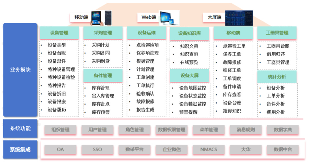 1、 建立全面的设备数字档案、业务流程电子化、巡检数字化、设备数据分析及可视化等功能,建立专有的知识库系统便于辅助分析及经验传承。