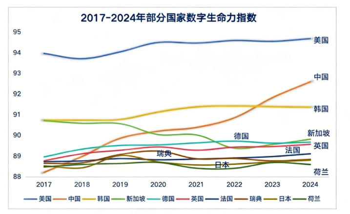2017-2024 年部分全球数字生命力指数发展趋势 来源:中国信息通信研究院