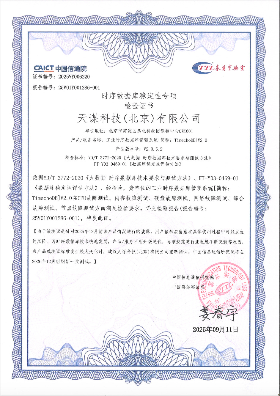 天谋科技及其核心产品TimechoDB在国产化与信创体系中,已通过多项政府机构及权威第三方测评机构的专业评测,具备清晰、可核验的资质认证与应用能力。该产品源于清华大学主导的国家科研成果转化,核心代码、系统架构与关键算法均由国内团队自主研发,具备高度自主可控基础,相关证书材料可按主办方要求提供备查。