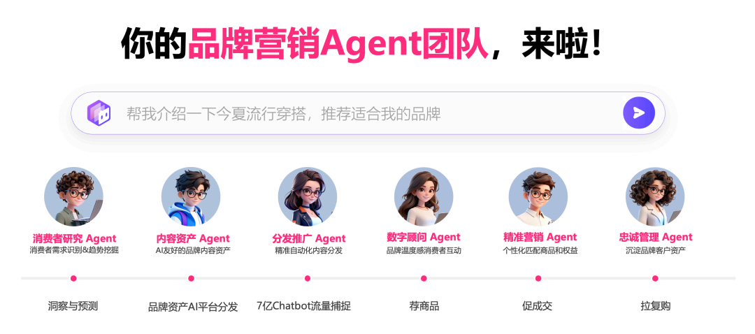 3. 促转化:主动对接7亿Chatbot流量池在流量获取环节,系统通过构建大模型通用数据基座,主动对接全网规模庞大的AI对话流量。当消费者在AI中表露对比或购买意图时,【营销Agent】能够利用预先部署的结构化优势信息 实施逻辑拦截,将高意图的对话流量高效转化为品牌确定的商业线索。