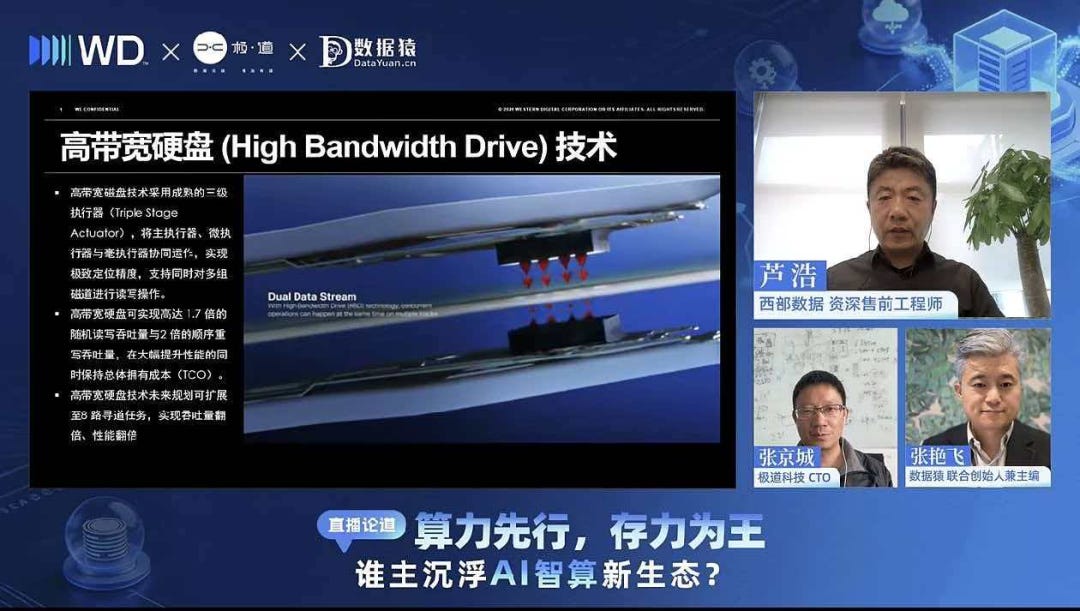 3月17日,一场题为《算力先行,存力为王——谁主沉浮AI智算新生态?》的直播活动盛大开启。此次活动由数据猿主办,特别邀请西部数据资深售前工程师芦浩、极道科技首席技术官张京城,以及数据猿联合创始人兼主编张艳飞担任直播主持,现场上演了一场精彩绝伦的思想交锋。