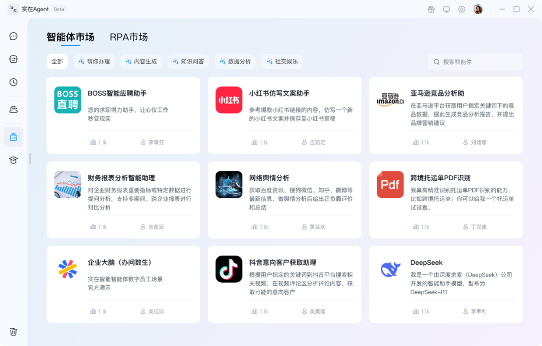 实在智能是一家AI科技公司、Agent智能体及RPA领域领军企业,致力于为企业和政府提供数字员工解决方案,加速数字化转型,帮助客户实现跨越式增长。实在智能在北上广深等十余地设立子公司和办事处,已服务制造、能源、金融、运营商、电商新零售、政府等领域等4000多家行业头部客户。