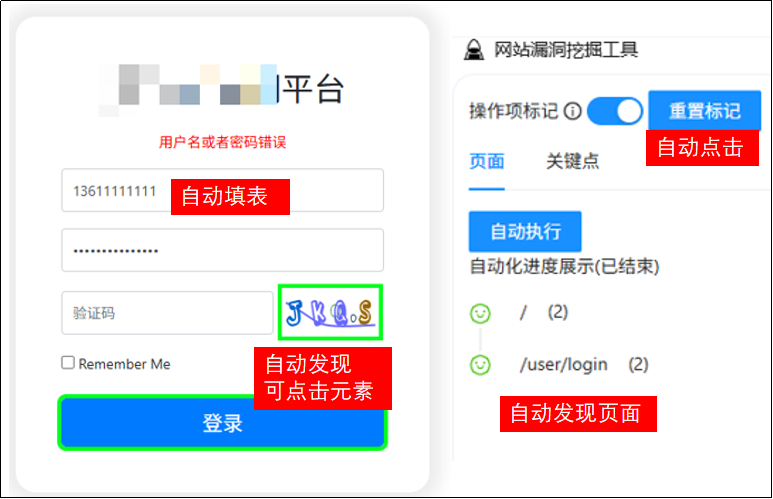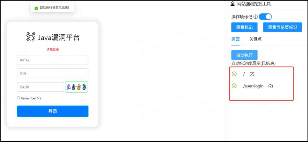 通过浏览器插件自动触发页面所有可交互元素(如智能表单填写、可交互元素点击),实时收集流量并分析潜在漏洞。例如自动探测登录页面的SQL注入点、敏感信息泄露等,解决人工测试中因页面覆盖不全导致的漏报问题。