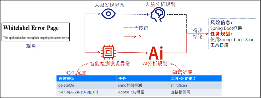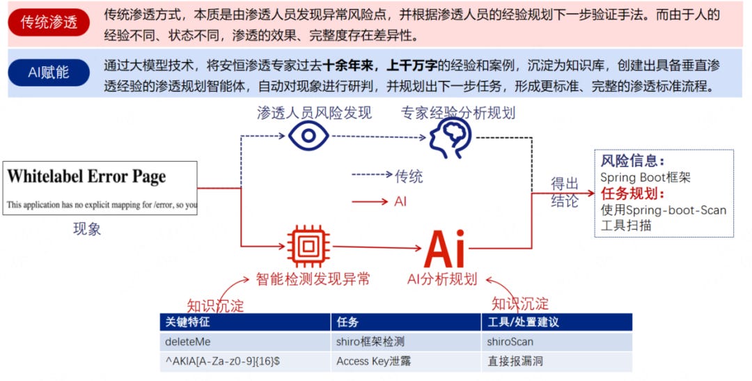 传统渗透方式,本质是发现某特征,由人脑的经验,判断出下一步渗透验证手法。而由于人的经验不同、身体/精神状态不同,渗透的效果、完整度存在不可控的因素。