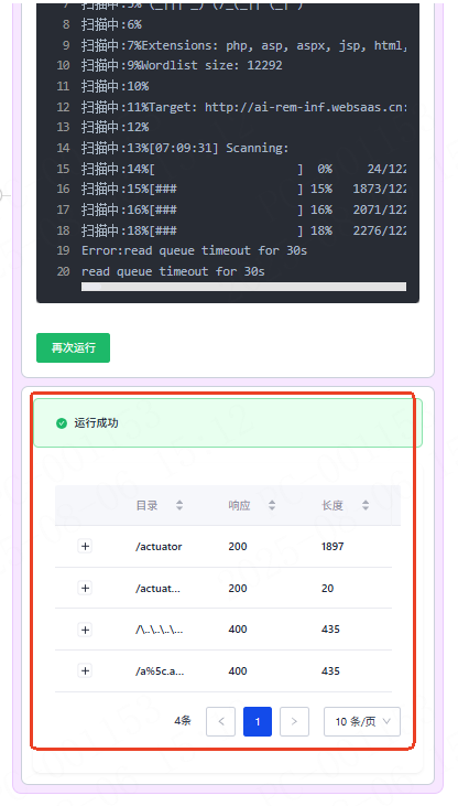 若对执行结果不满意,或者执行异常,可以点击“再次运行”按钮,重新执行。