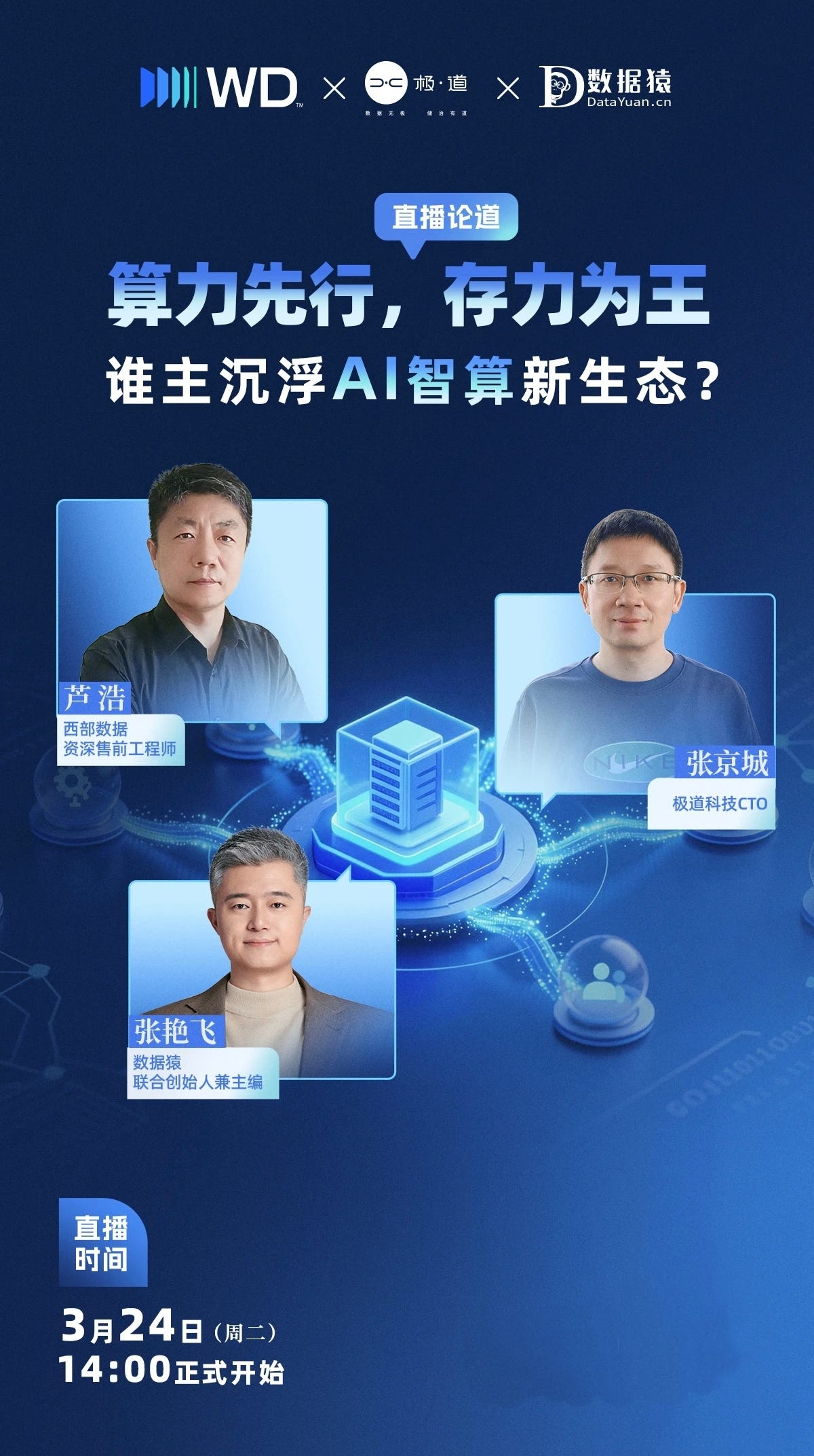 本次由数据猿联合西部数据与极道科技共同发起的直播,将深度聚焦AI智算新生态,从软硬一体化的视角,拆解大模型时代的“算账”之道。