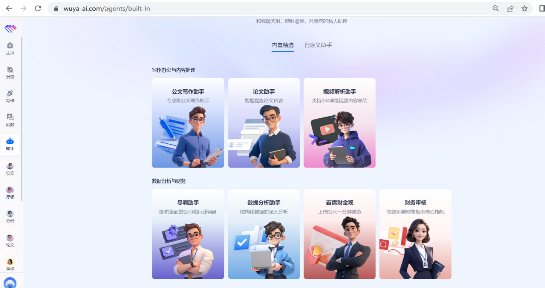 多场景实战落地:内置多种助手,覆盖数据分析、写作、审核等企业核心场景,帮助用户高效处理数据、精准获取信息。同时支持自定义助手,用户仅需经过简易的界面配置,即可快速搭建特定场景的应用。