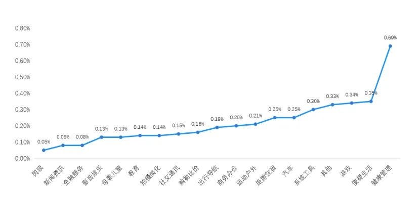 不同行业的网络耗时呈现出极端的差异,可谓“冰火两重天”,一些行业如社交通讯、拍摄美化、购物比价等,由于开发者对网络性能的高度重视,用户体验相对统一,网络耗时的跨度较小。