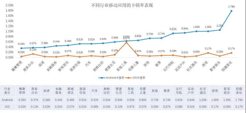 然而,不同行业的卡顿“战场”呈现出另一番景象。行业卡顿率的“红黑榜”上,一些行业如阅读、金融服务、新闻资讯等表现出色,而拍摄美化、影音娱乐行业在Android端的卡顿问题则较为突出,这在用户心中种下了不满的种子。卡顿不仅影响了用户的即时体验,更对用户留存率构成了潜在的威胁。用户对卡顿的容忍度极低,一次不愉快的卡顿经历足以让用户转向竞争对手。
