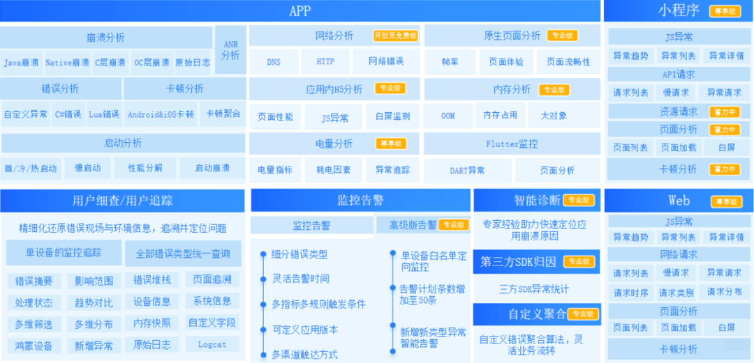 上面分析了移动应用普遍存在的崩溃、卡顿、网络耗时问题,每一个问题都是对用户体验的巨大伤害。而要解决这些问题,需要足够强大的移动应用性能监控与优化工具。