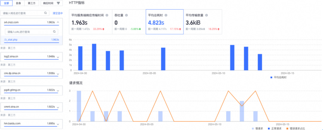 在网络分析方面,U-APM通过监控HTTP、DNS、CDN等网络性能关键指标,U-APM能够帮助开发者全面了解应用在不同网络环境下的性能表现。无论是网络请求的响应时间、数据传输量,还是DNS解析时间、TCP连接时间,U-APM都能提供详尽的数据分析报告,帮助开发者优化网络请求和数据传输策略,提升用户的网络体验。