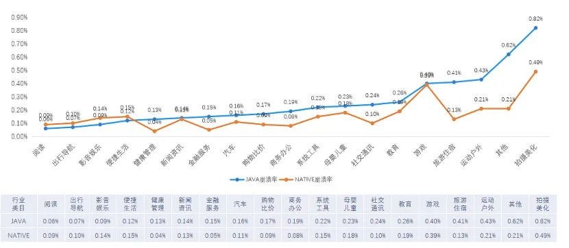 此外,不同行业的应用在崩溃率上也呈现出显著差异。并且,Android和iOS设备上的移动应用崩溃率,表现出不同的行业特性。