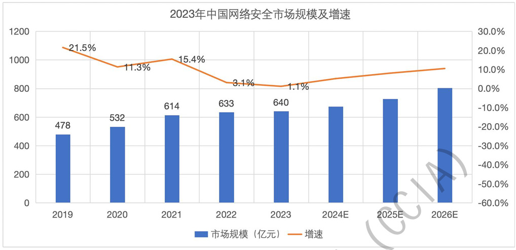 根据《中国网络安全产业分析报告20204年》的数据,从区域来看,2023年,华北、华东、华南地区网络安全市场份额分别为38%、23%及14%;从客户行业属性来看,政府部门对网络安全项目的需求较大,近年来一直占据最大份额;能源、企业、金融、电信、军工、公检法司、医疗、交通、教育等与国计民生紧密相关的领域紧随其后,网络安全需求和投入均十分可观,预计到2026年市场规模将超过800亿元。
