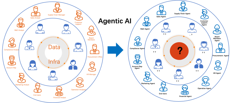 然而,随着AI Agent时代的到来,这一逻辑正在被彻底颠覆。Agent不再是被动的工具,而是能够感知环境、理解业务语义、主动执行任务的“数字员工”。当数据的最终消费者不再是分析师和管理者,而是Agent,本质上意味着企业数智化的用户边界被打破。传统的“人驱动决策支持系统”(DSS)模式正在让位于“Agent驱动的智能交互”。