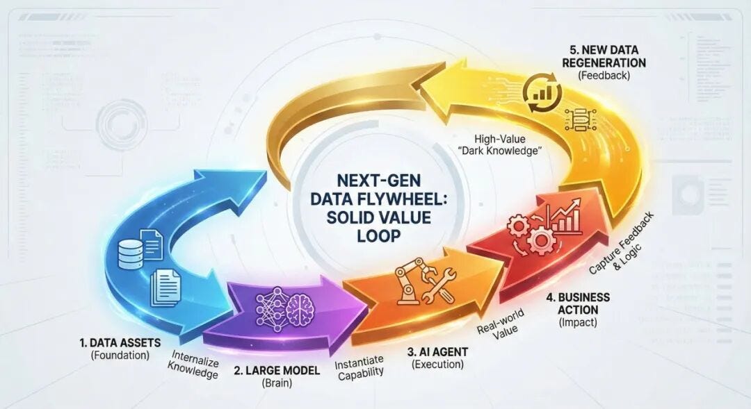 下一阶段的核心,是构建更扎实的”价值回路”:数据→大模型→智能体→业务行为→新数据再生。