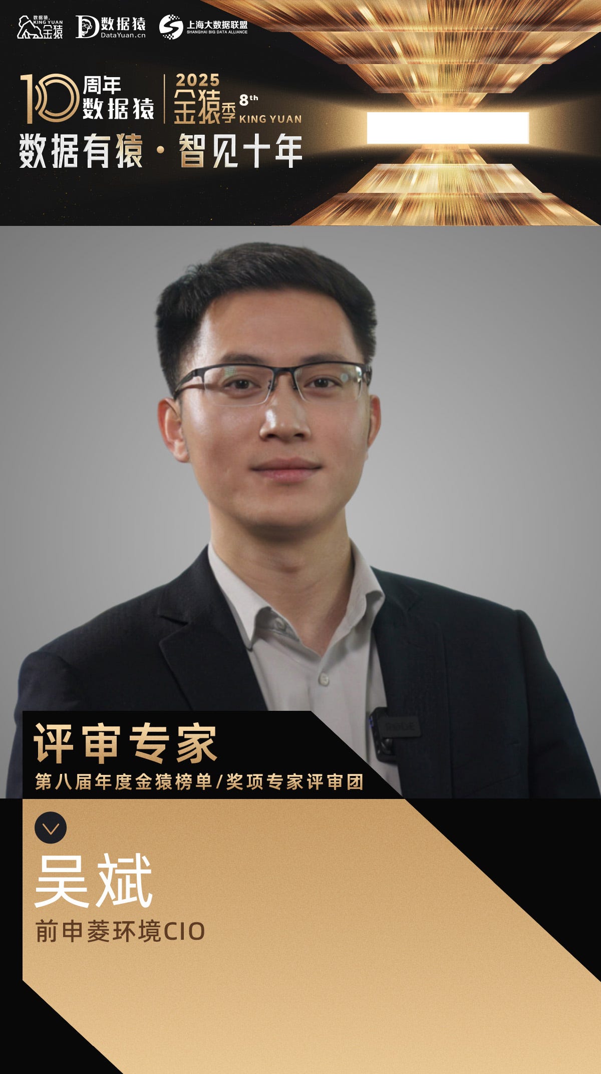 【终审团专家公告】前申菱环境CIO吴斌,已确认成为“2025第八届年度金猿”榜单/奖项评审团专家评委,并将授予评委荣誉证书。