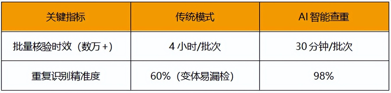 以一个电商行业的代表性痛点问题为例。客户或业务进行商品检索时,因相同商品重复上架,导致客户陷入“文字迷宫”,同一商品因参数表述差异形成信息壁垒,相似规格商品因命名体系混乱增加筛选难度,大幅延长需求与商品的匹配周期。方案上依托大模型推理能力,构建商品全生命周期唯一化管理体系,建设AI智能查重引擎,实现变体商品、高度相似商品的精准识别。其核心在于突破表层文字符号的束缚,即便面临表述范式差异、属性维度重组等复杂场景,仍能精准锚定商品实体的同源性内核。
