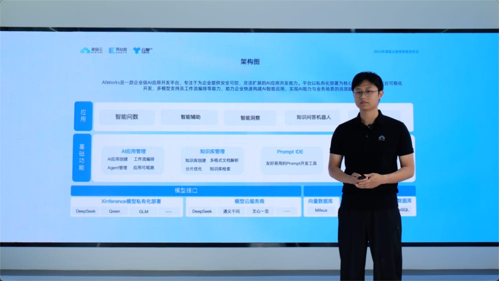 袋鼠云AI产品专家林树聚焦企业核心场景,分享了通过AI技术助力客户实现业务效率提升与智能化转型的两大场景。基于实践沉淀,袋鼠云推出AI应用开发平台,赋能企业快速构建智能应用。