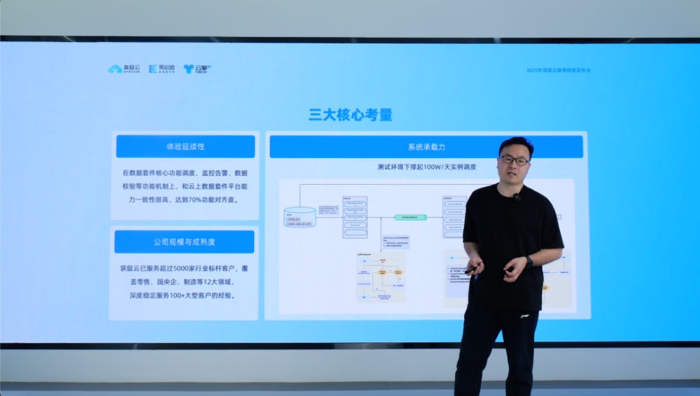 袋鼠云创始人、CEO宁海元强调了“做Data+AI长期主义者”核心战略,强调以数智基建与数智应用的深度融合为目标。历经十年发展,其数栈产品凭借领先的技术能力,已成为头部客户国产信创和公有云大数据平台下云的优选大数据底座和开发平台,真正打通从数据治理到业务应用的“最后一公里”。