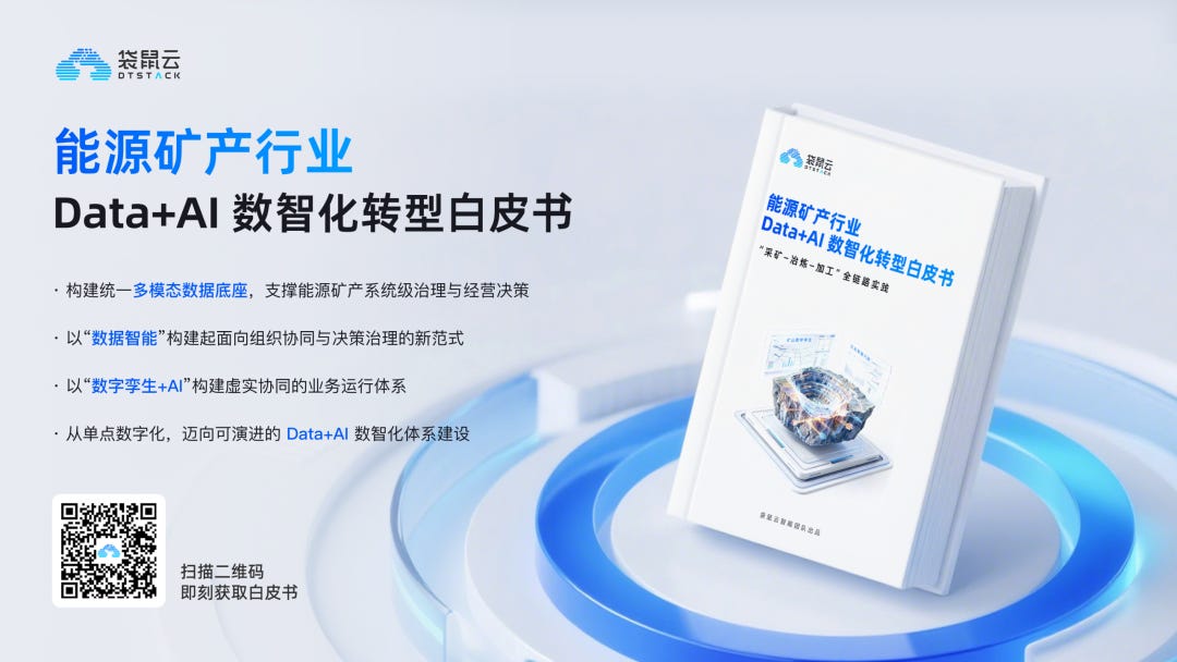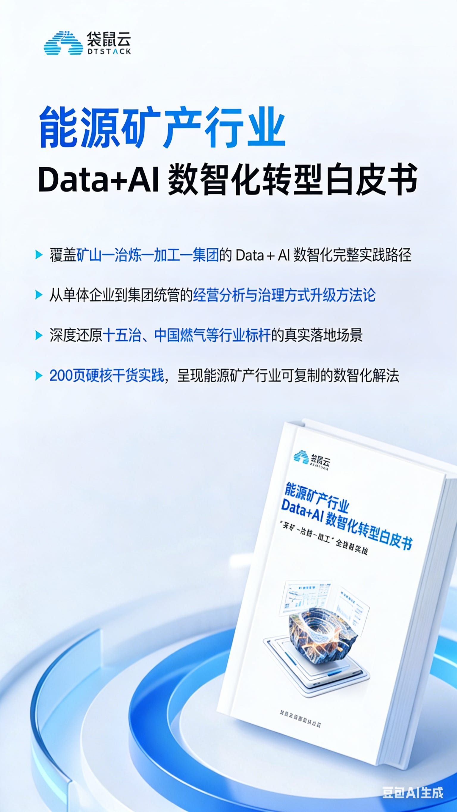 在这样的背景下,袋鼠云正式发布《能源矿产行业 Data+AI 数智化转型白皮书》,试图回答一个现实问题:当运行复杂度、风险密度与组织半径不断放大,企业如何构建一套能够长期运行、持续演进的数智化运营体系,使数据真正参与到治理与决策之中?这份白皮书结合矿山、冶炼、加工与集团型企业的实践案例,系统梳理出一条从数据基建到治理与应用能力升级的可行路径。