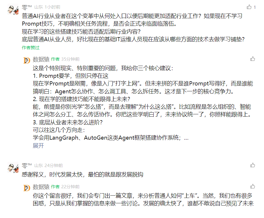 你可能很努力地在精进现有技能:学了几十种Prompt模板,能让DeepSeek写代码、生成文章、翻译合同;熟练使用LangChain,能搭建“RAG+函数调用”智能体系统;会用AutoGen跑出一个带GroupChat的Agent协作流程;能部署模型,能调API,能写一点简单的前端工具界面。这一切看起来没问题,甚至已经比大多数人“更前沿”。但问题就在于:你学的,也许不是未来要的。
