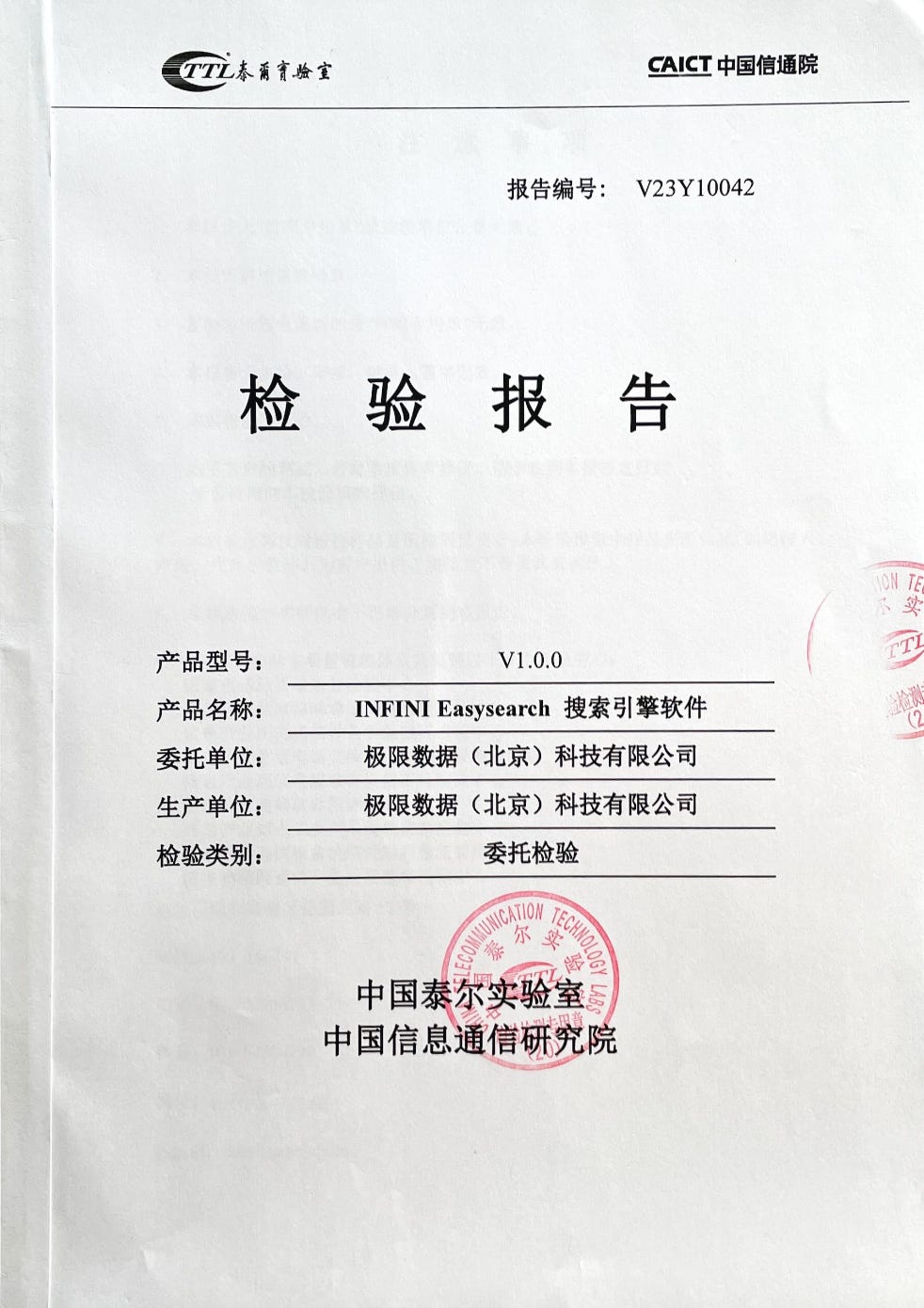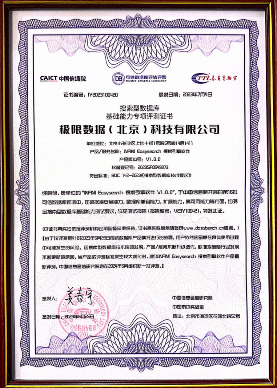 ·信通院&中国泰尔实验室-Easysearch检验测试报告