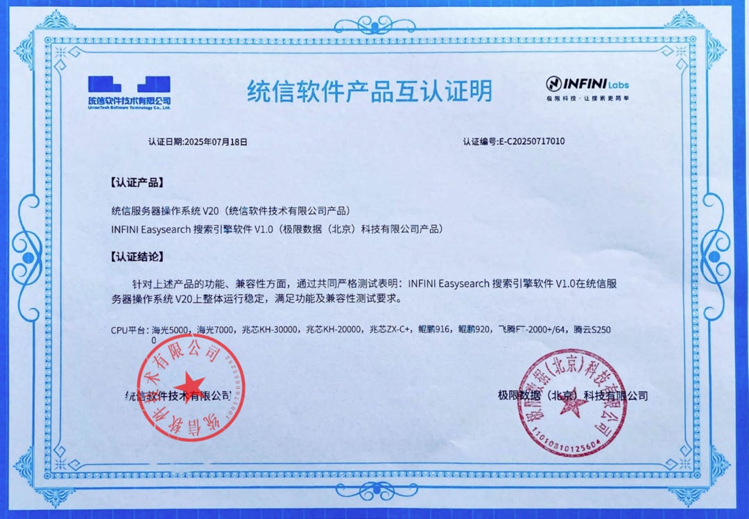 通过上述突破,Easysearch在国产搜索基础软件体系中实现了自主、安全、可控的核心技术落地,为我国搜索引擎领域的国产化替代提供了坚实支撑。