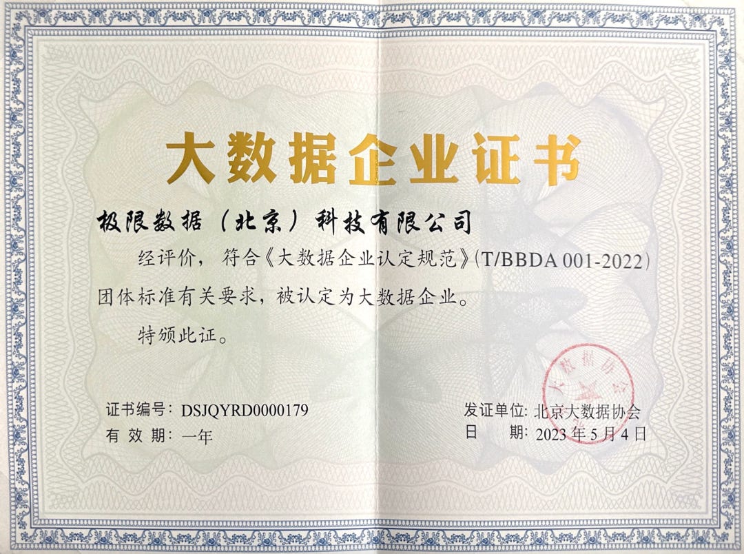 ·北京大数据协会大数据企业认证
