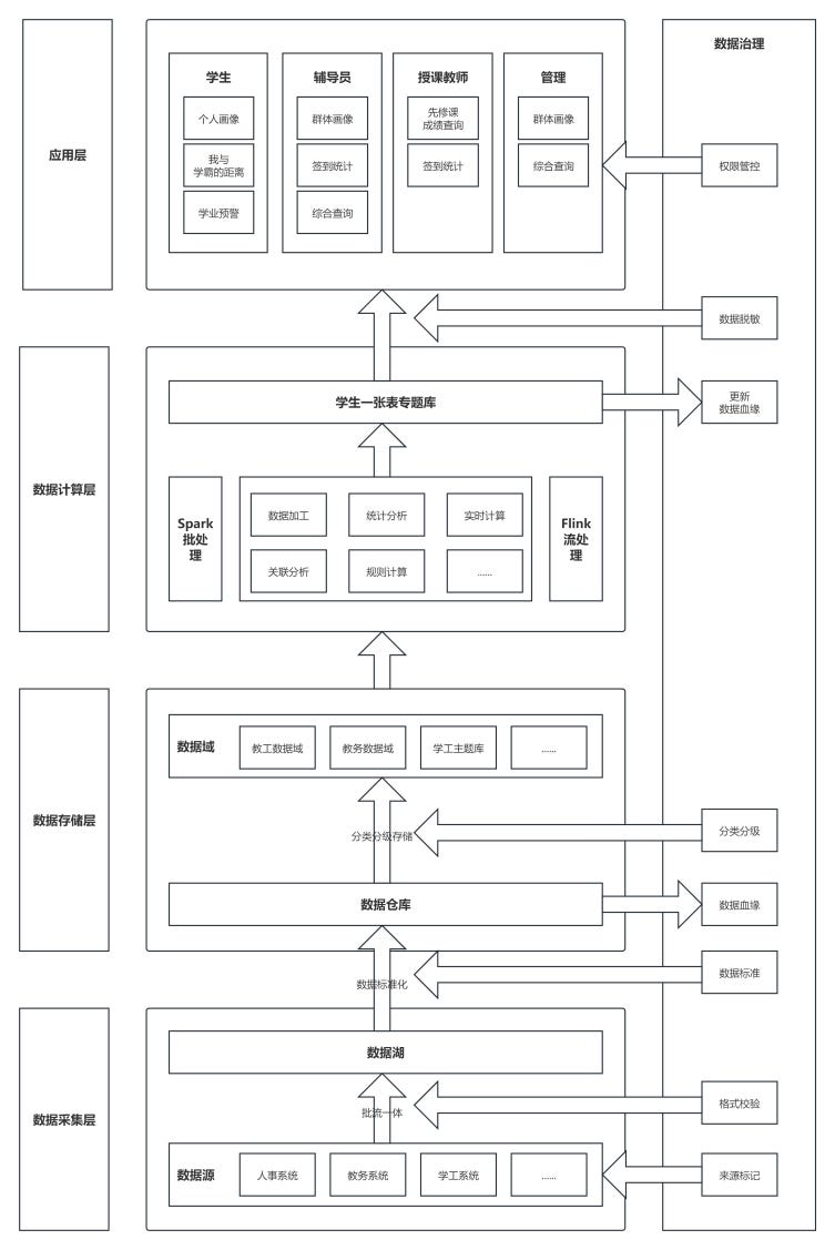 ·应用层:价值实现的“触点”,通过“学生一张表”统一门户,向不同角色输出场景化数据服务。