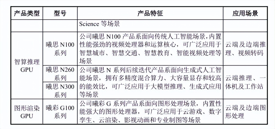 曦思®N系列:主要应用于安防、智慧城市、智慧交通、视频云等领域;首款智算推理芯片曦思N100于2023年4月正式量产。曦思N100芯片从设计、流片到量产,为公司打通了从研发到生产再到销售的全业务流,完善了产品、生产供应链和销售渠道的储备资源,奠定了公司的经营模式和商业模式。