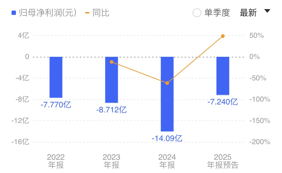 但与营收高速增长形成鲜明对比的是,公司净利润始终处于亏损状态。财务数据显示,2022年-2024年,沐曦股份归属于母公司所有者的净利润分别为-7.77亿元、-8.71亿元、-14.09亿元。2025年业绩预告显示,公司预计亏损6.5亿元至7.98亿元。