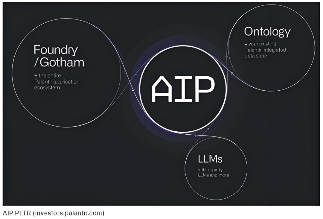 2023年,Palantir推出了AIP(Artificial Intelligence Platform),这一平台的核心是将生成式AI技术嵌入到客户的业务流程中,为政府、军工和企业客户提供实时分析、预测与智能化支持。