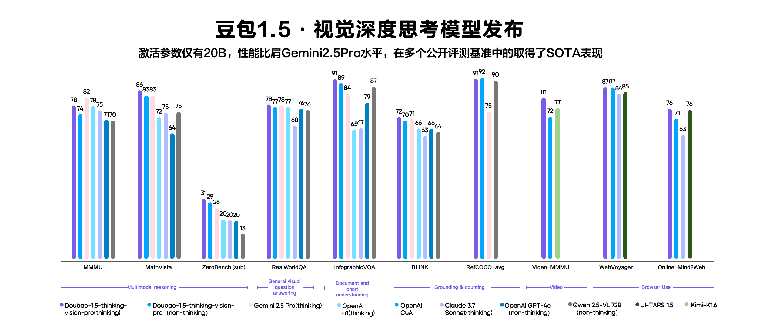 豆包1.5·视觉深度思考模型,在60项公开评测中取得38项第一