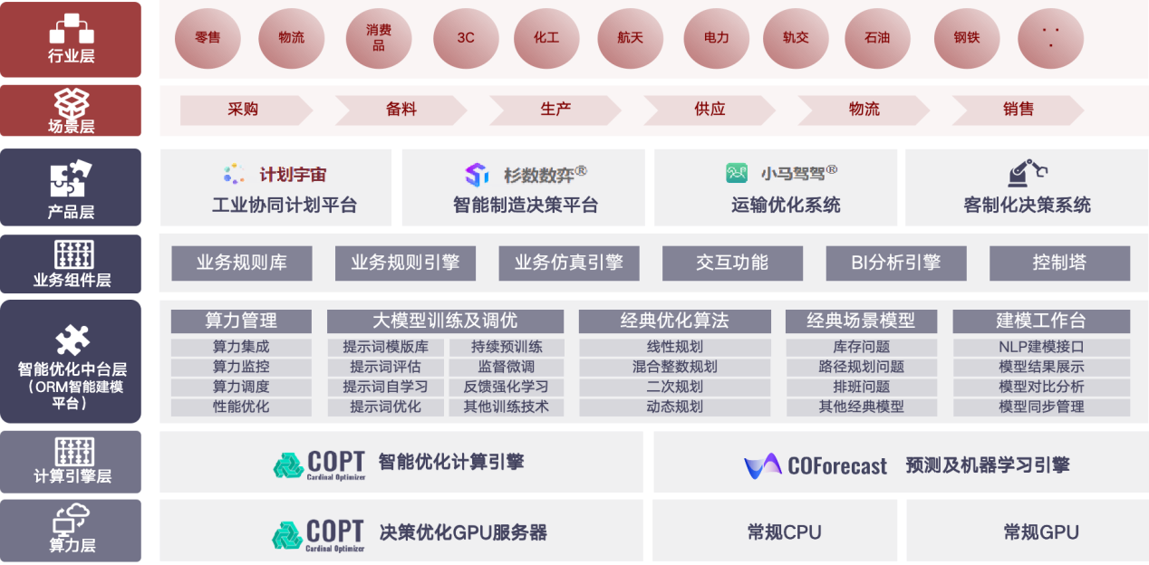 人工智能发展的下一个关键阶段,将聚焦“智能决策”与“产业落地”的深度融合。杉数科技将持续深耕库函数研发、数学优化、数理建模、AI算法研发以及产业落地应用,构建全国产自主可控的智能计算产品体系,面向能源、交通、制造、金融、教育等重点领域,打造全面覆盖从算力基础到智能决策的生态闭环。