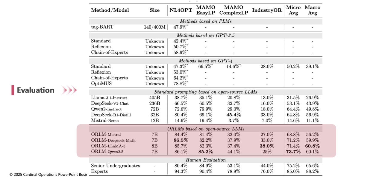 当下企业决策正从传统的经验驱动向数据驱动、智能化转型。运筹学与人工智能技术的深度融合,正在重塑企业的决策逻辑。杉数科技联合上海交通大学智能计算研究院等单位推出了全球首个开源运筹学大语言模型ORLM,在多个标准测试集上的表现均超越了GPT-4等闭源模型,广泛应用到国内40多所科研院所与高校,成为优化建模领域目前备受关注和落地程度最高的大模型。这一创新成果标志着运筹学从依赖专家经验的传统建模范式,正式迈向自动化与智能化的崭新阶段。