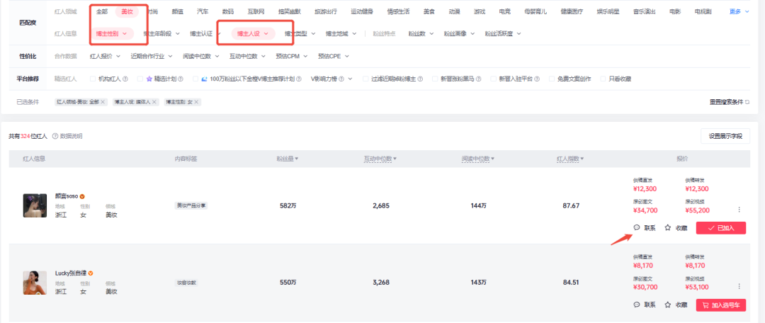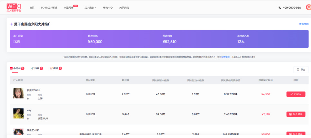 平台通过大数据和AI技术实现红人与企业的精准匹配,将传统的“人找资源”模式升级为“智能推荐”模式,大幅缩短了投放决策周期,降低了企业的搜寻成本和试错成本。