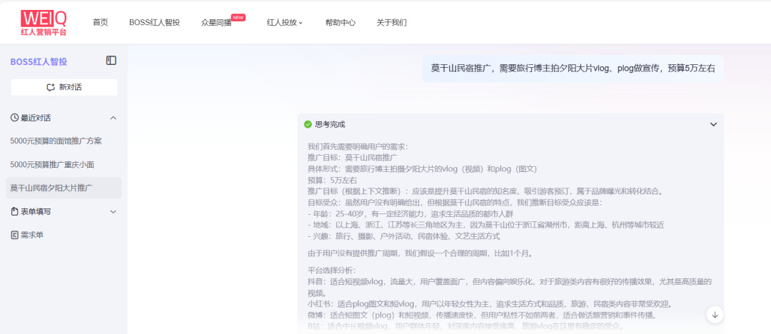 2025年,WEIQ平台基于DeepSeek大模型技术,全新升级推出WEIQ BOSS红人智投,重构红人投放全流程,为企业客户提供智能化的营销解决方案。